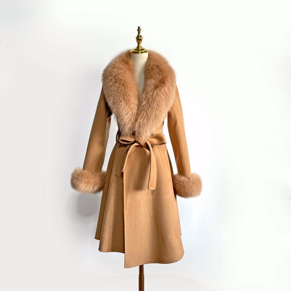 Look sophisticated with this luxurious virgin wool coat featuring a large fur collar. Offering reliable warmth and a stylish outfit, this coat is ideal for brisk days and special occasions. Its white color adds a timeless element to any look.