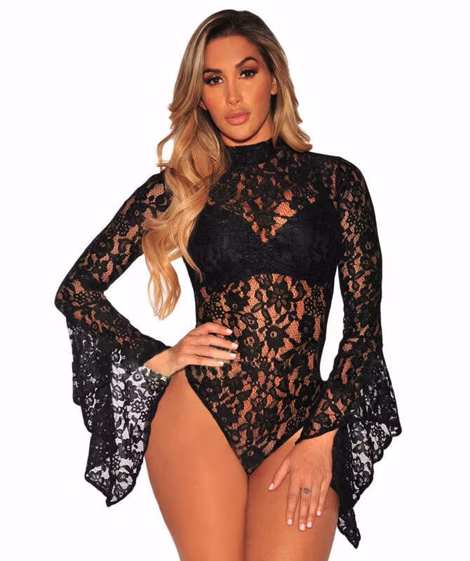 Långärmad body i spets. Tillgänglig i svart och vit.
